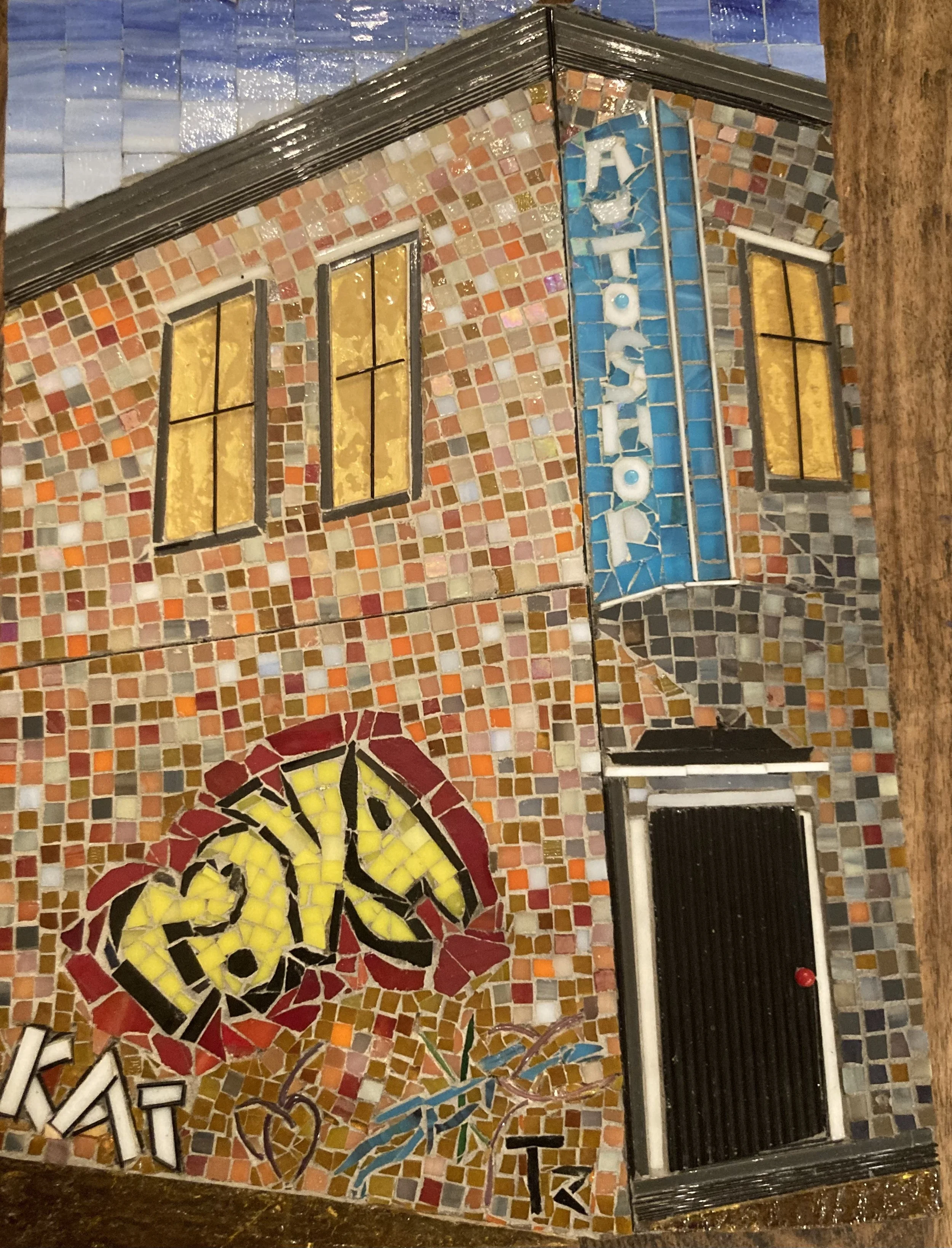 Close up of micro mosaic filato technique. After Vincent Van Gogh’s Starry Night.